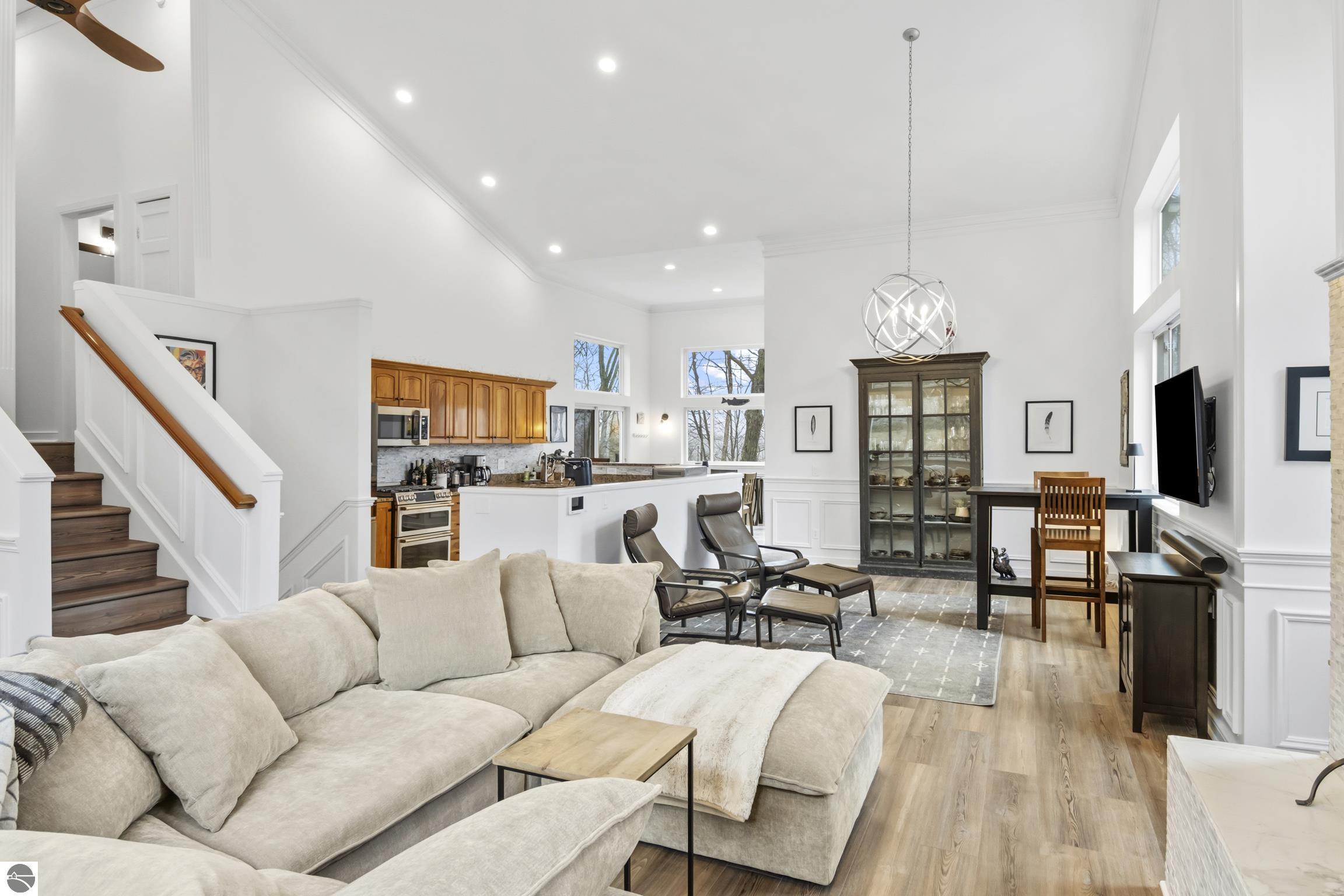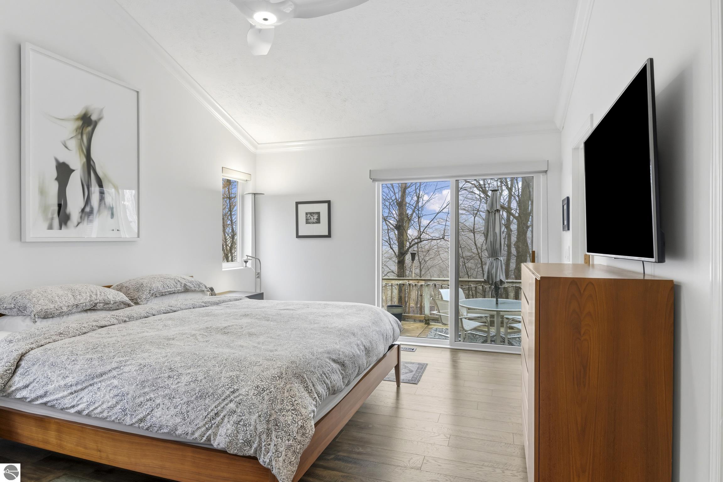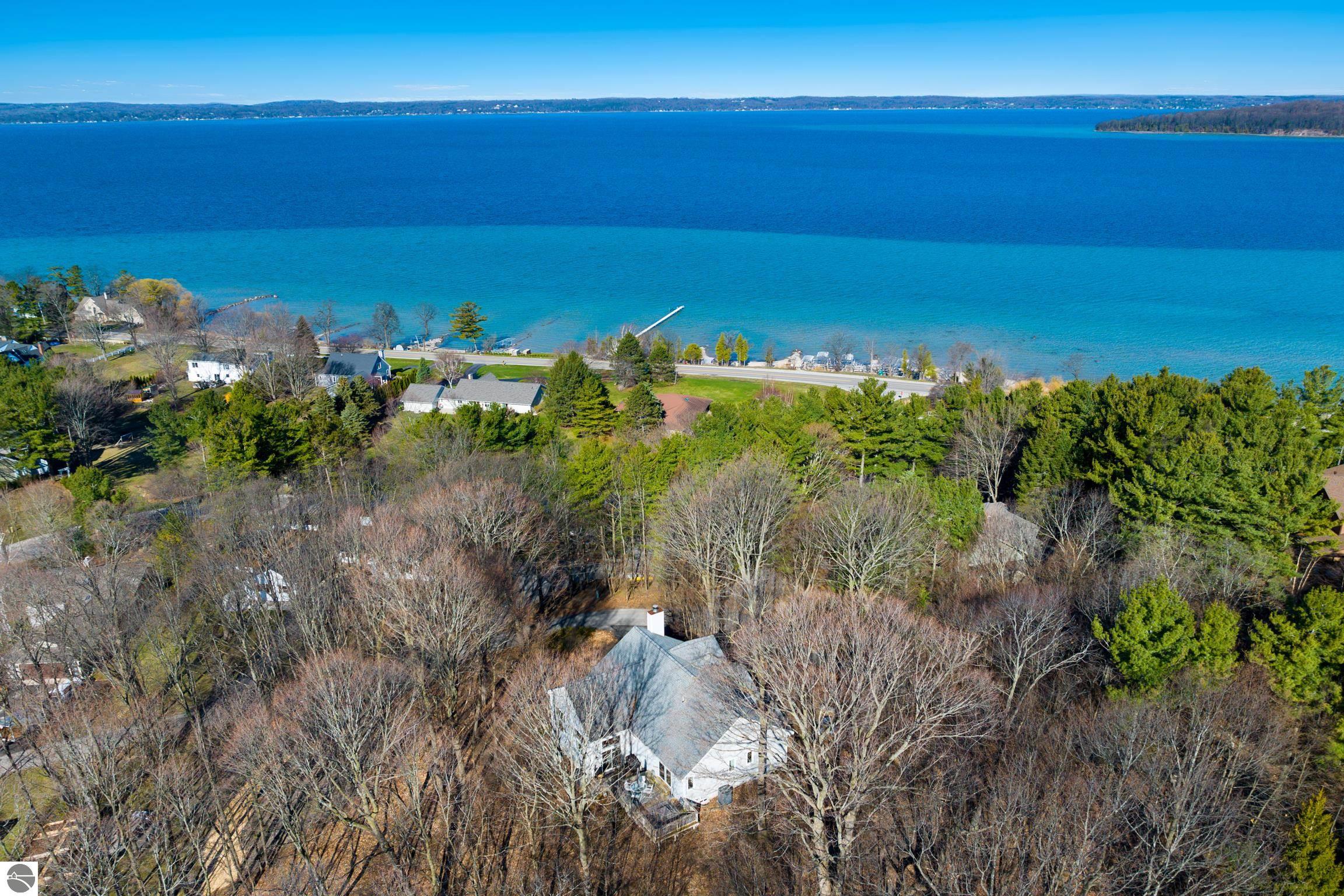 Set along the highly sought-after Old Mission Peninsula, this exceptional 4-bedroom, 3-bath home offers over 300 feet of pristine frontage on Grand Traverse Bay. Surrounded by natural wooded beauty and privacy, the property captures the essence of Northern Michigan waterfront living. Thoughtfully updated with numerous upgrades, the home blends comfort and style. Expansive windows frame breathtaking bay views, offering stunning water vistas for seven months of the year and ever-changing seasonal scenery. All new HVAC, UV light, water softener, Reverse Osmosis system, new paint, fiber optic wifi, new flooring, new appliances, Generac, new garage doors, EV charger added to garage which has room for workspace. Gorgeous shared frontage has swimming, fire pits and docking. This is a rare opportunity to own an expansive stretch of shared frontage. Whether you're seeking a year-round residence or a luxurious retreat, this property delivers the best of Peninsula living—just a short drive from the charm, dining, and amenities of Traverse City.