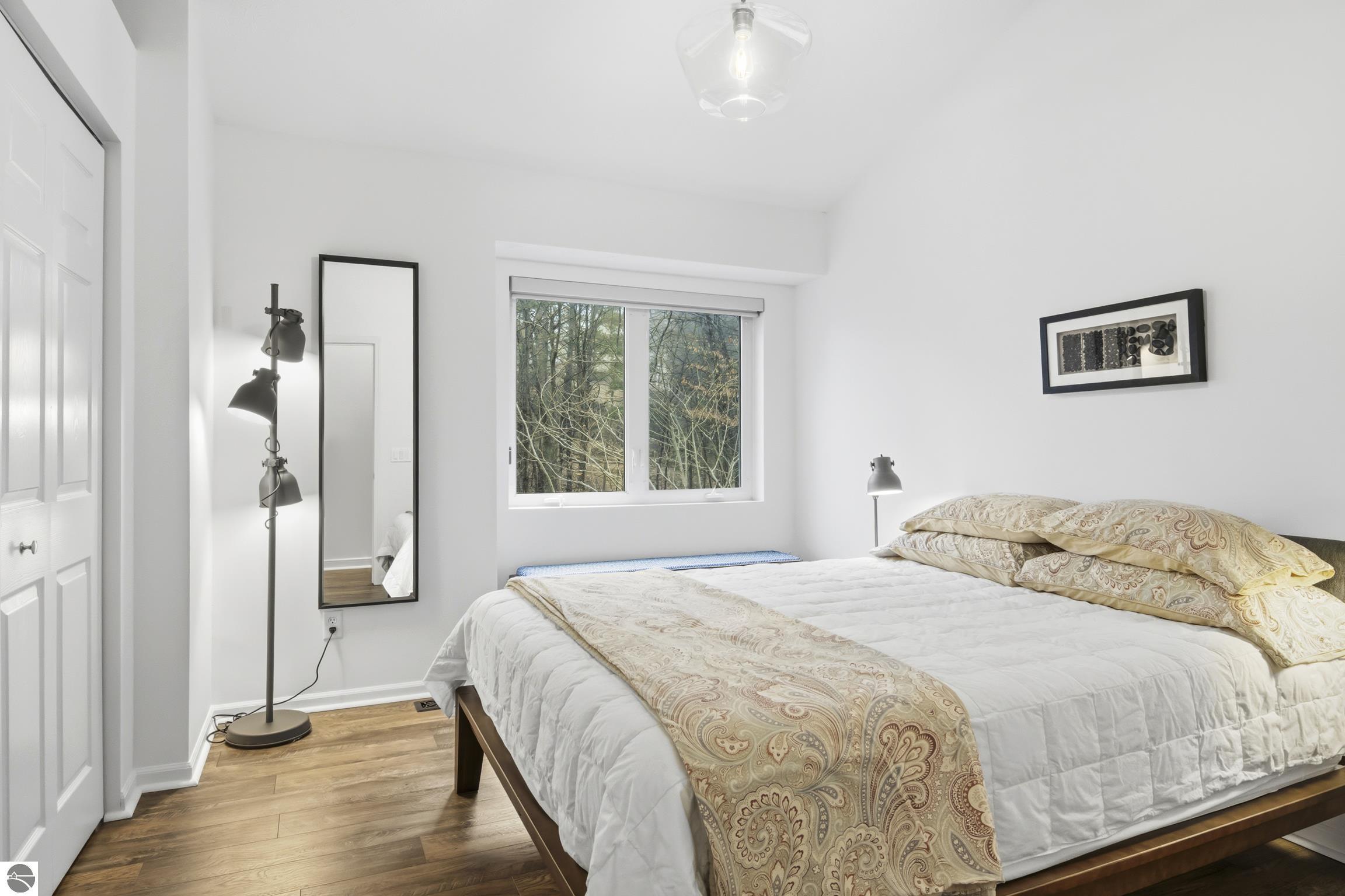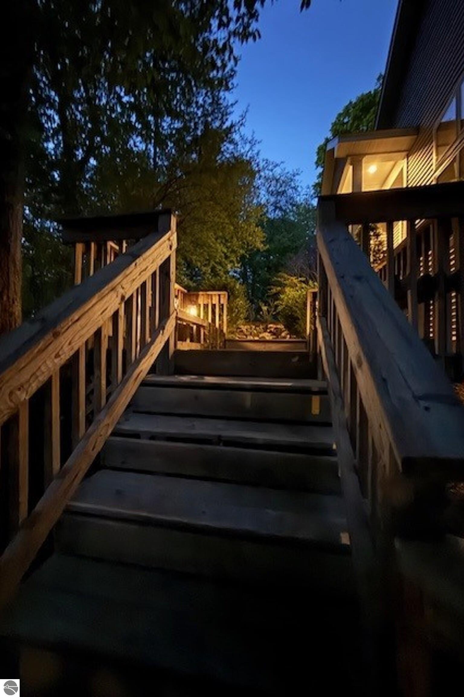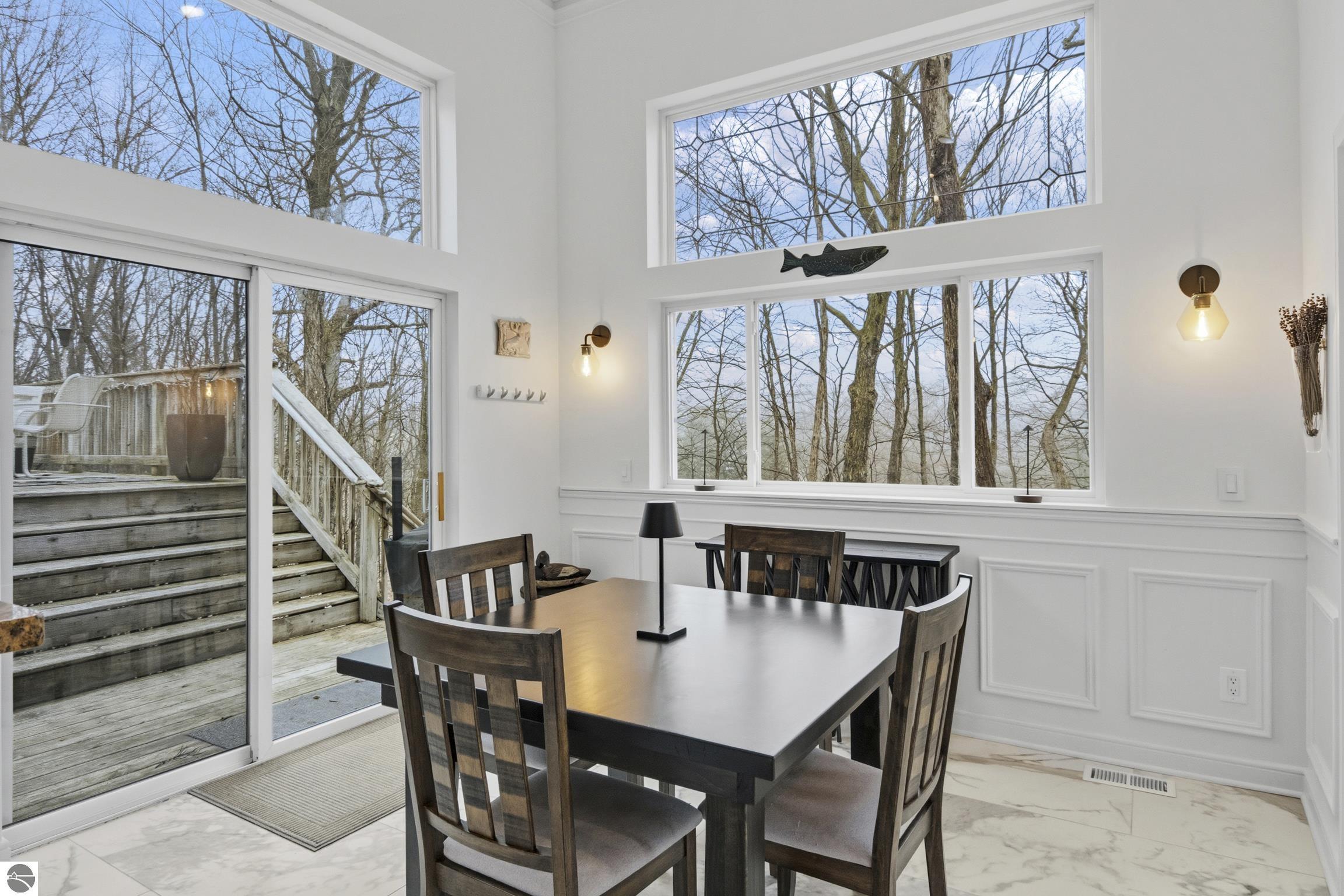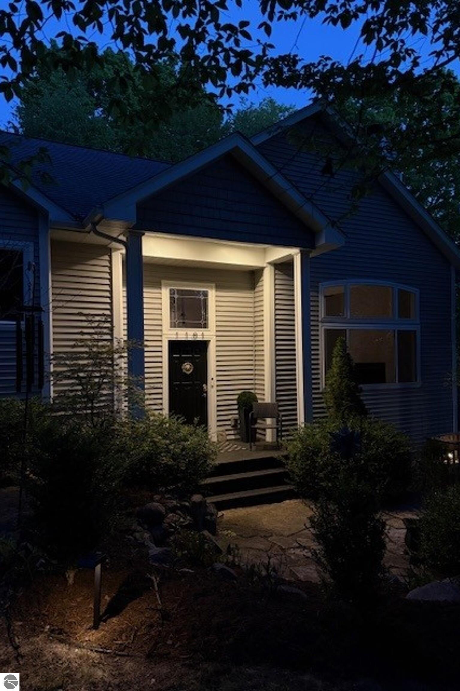 Set along the highly sought-after Old Mission Peninsula, this exceptional 4-bedroom, 3-bath home offers over 300 feet of pristine frontage on Grand Traverse Bay. Surrounded by natural wooded beauty and privacy, the property captures the essence of Northern Michigan waterfront living. Thoughtfully updated with numerous upgrades, the home blends comfort and style. Expansive windows frame breathtaking bay views, offering stunning water vistas for seven months of the year and ever-changing seasonal scenery. All new HVAC, UV light, water softener, Reverse Osmosis system, new paint, fiber optic wifi, new flooring, new appliances, Generac, new garage doors, EV charger added to garage which has room for workspace. Gorgeous shared frontage has swimming, fire pits and docking. This is a rare opportunity to own an expansive stretch of shared frontage. Whether you're seeking a year-round residence or a luxurious retreat, this property delivers the best of Peninsula living—just a short drive from the charm, dining, and amenities of Traverse City.