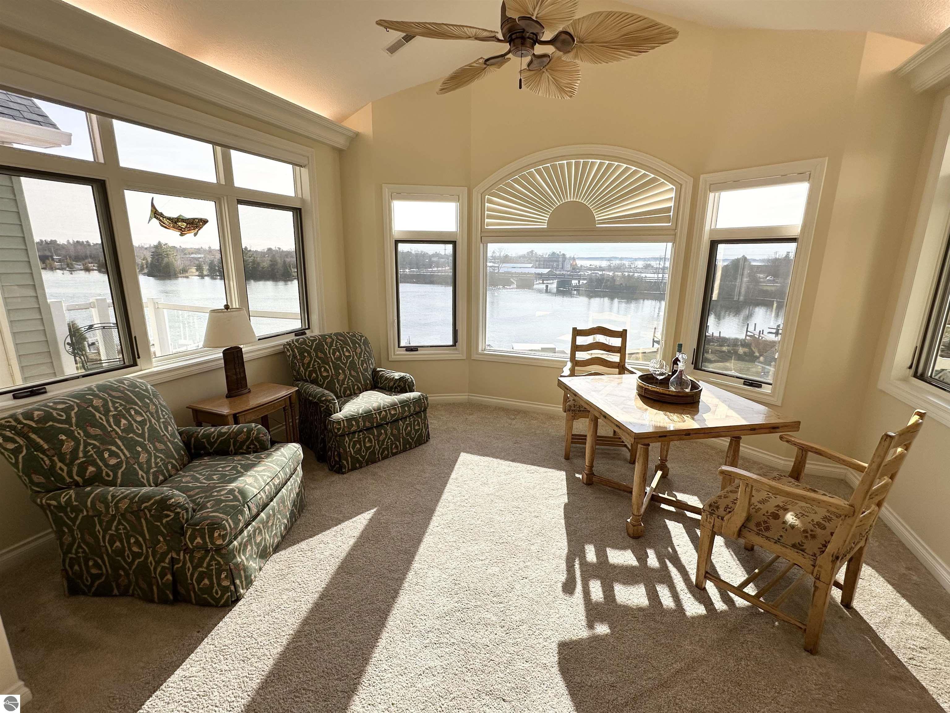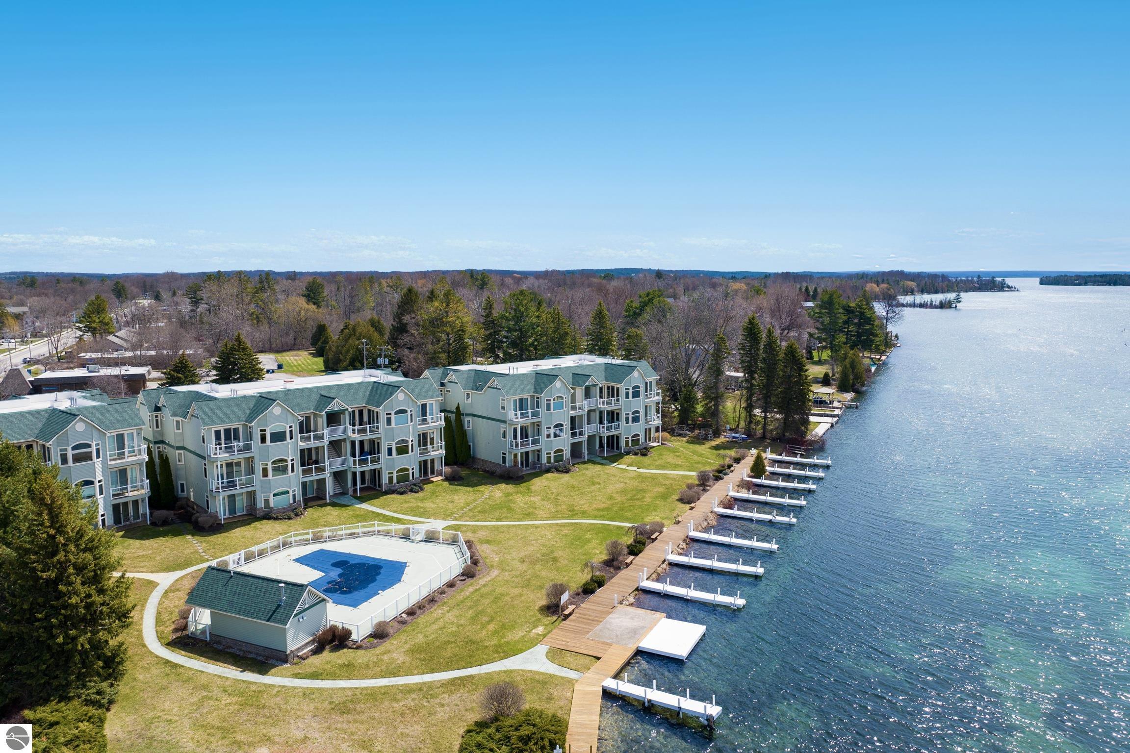 Rare top-floor, riverfront condo Unit 12 is offering panoramic Elk River views, direct waterfront access, and no neighbors above. Enjoy your private boat slip and access to the community pool, with the entire Chain of Lakes just moments away.Thoughtful upgrades throughout include new furnace and A/C water heater, WiFi-controlled thermostat, new carpeting, Trex decking, washer/dryer quartz and granite counter tops and much more.Bright, open, and filled with natural light, this condo offers a peaceful, private feel just minutes from downtown Elk Rapids. The perfect Up North getaway or year-round home this one is a must-see.