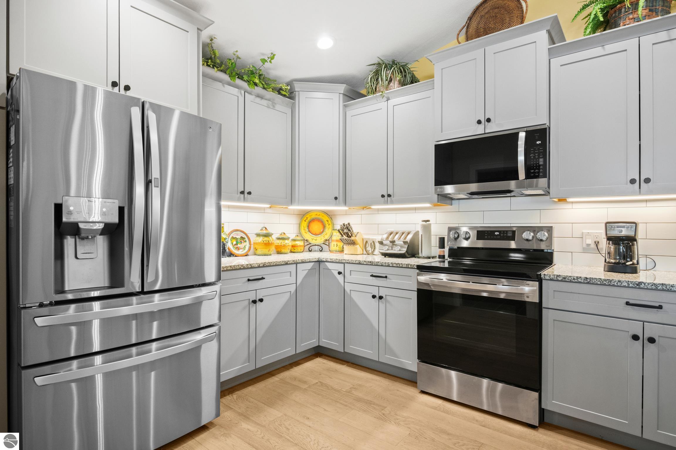Experience modern living in this 2023-built condo, ideally located minutes from downtown Traverse City, the airport, beaches, and the public library. The light-filled, open floor plan showcases vaulte...