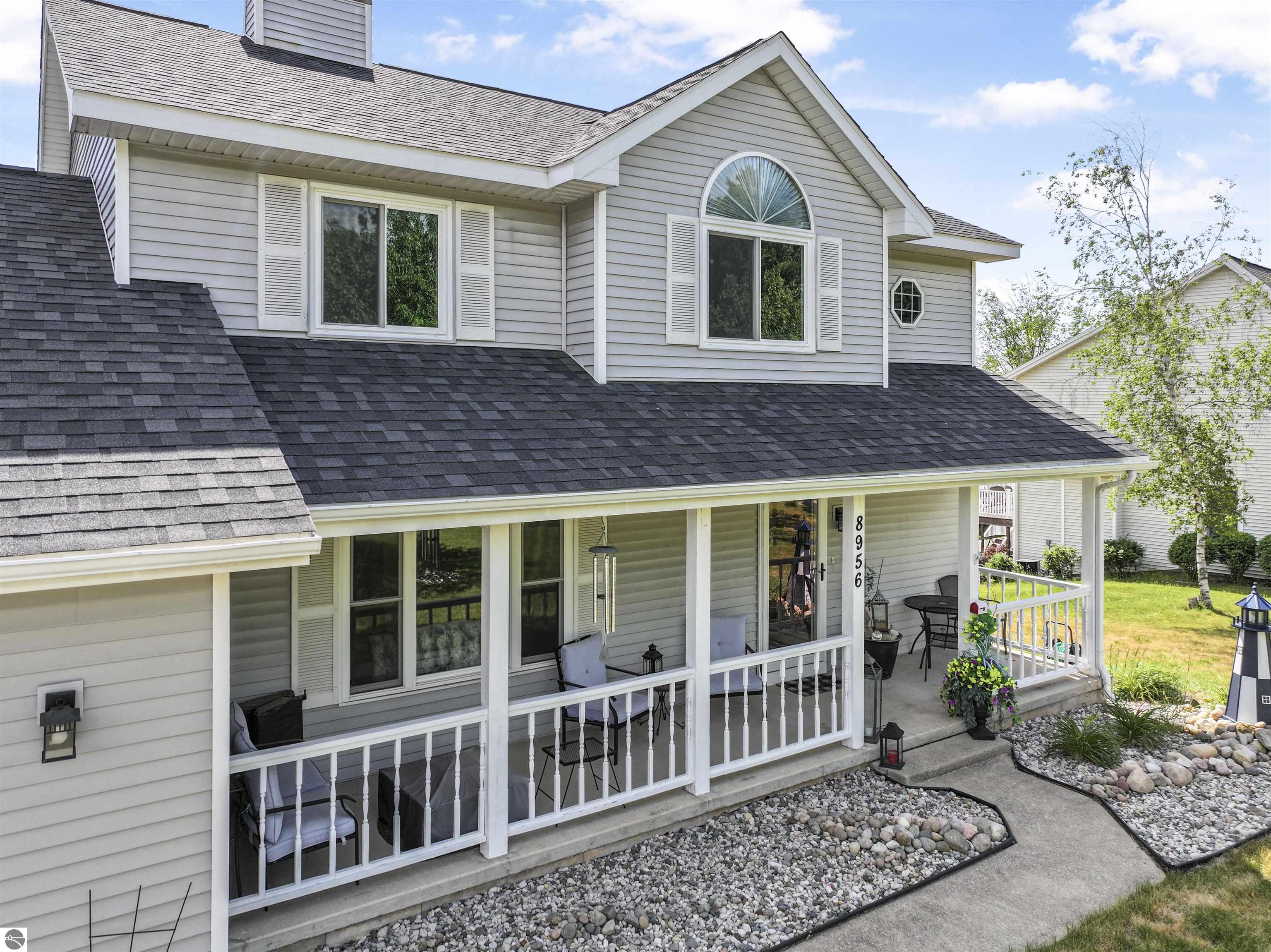TORCH LAKE FRONTAGE, an 18-acre wooded setting with sunset views and a 1/2 log home (exterior only) are waiting to welcome you home! A beautifully maintained home featuring a great room with a soari...